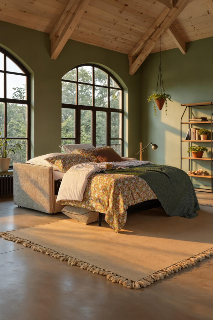 Le mécanisme intégré de permet une transformation rapide et intuitive. En un seul geste, votre salon se métamorphose en chambre, sans contrainte ni effort. Ce système a été conçu pour durer, et rester aussi fluide qu’au premier jour.