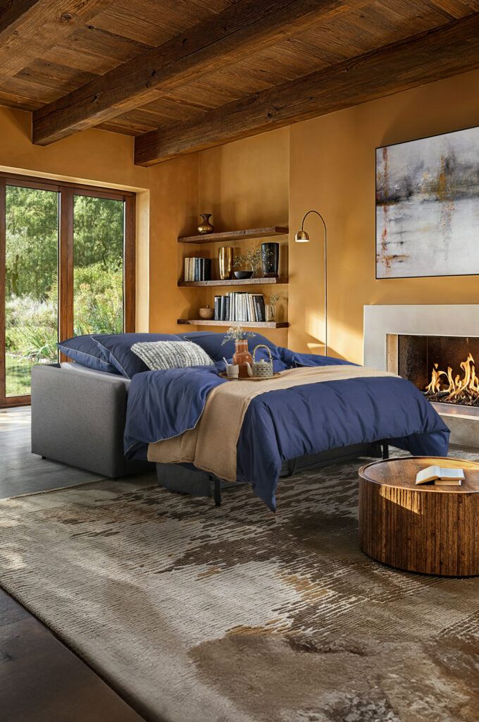 Le mécanisme intégré permet une transformation rapide et intuitive. En un seul geste, votre salon se métamorphose en chambre, sans contrainte ni effort. Ce système a été conçu pour durer, tout en restant aussi fluide qu’au premier jour.